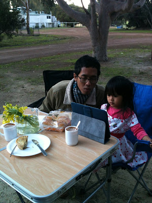The Precils makan sendiri ya, biar Emaknya nggak repot :p At Kingscote Tourist Park. |
