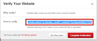 - Ke tiga copypaste kode verifikasi pinterest dan simpan pada template Anda