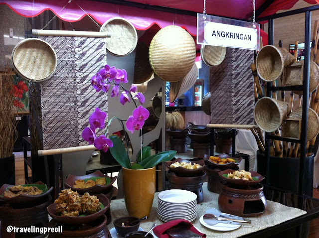 Buah dan minuman yang disediakan juga beragam. Ada Mas-Mas yang menawarkan jamu beras kencur, kunir asam dan sinom. Ini rasanya seger banget. Tapi sayangnya, kopinya nggak enak. Nggak tahu deh, negeri penghasil kopi tapi jarang ada kopi enak terhidang di hotel. Missing link-nya di mana ya?