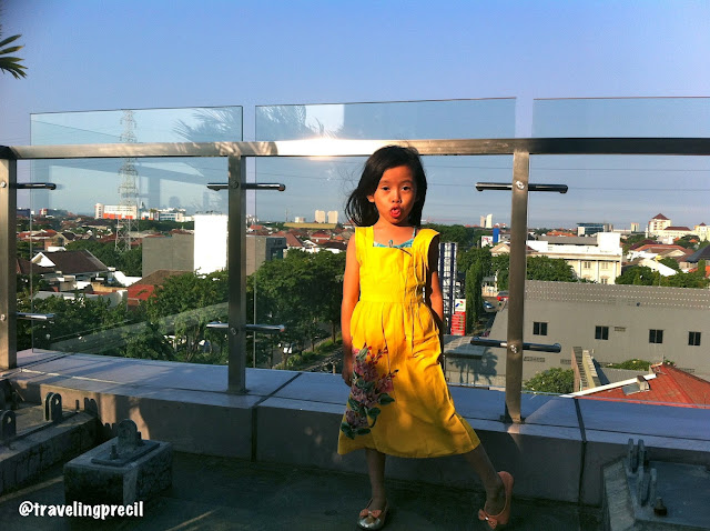 Senin pagi, ketika kami pulang dari berakhir pekan di Malang, kami mendapati jalan di depan rumah kami sudah dipasangi terop. Rupanya tetangga mau punya hajatan. Acaranya mulai jam 6 sore. Kami tahunya juga dari spanduk yang terpasang karena si tetangga tidak bilang permisi sama sekali ke kami. Yo wes, nanti tinggal pergi aja sorenya biar nggak pusing kena bising. E ternyata cek sound sudah dimulai jam 9 pagi, dengan suara dentuman speaker raksasa yang menggetarkan jendela rumah kami. Little A yang kebetulan libur karena ada UN SD sampai takut dan teriak-teriak. Waduh, kalau begini caranya harus keluar rumah nih, sebelum gendang telinga kami meledak. Saya dengan cepat mengais-ngais promo/kupon/poin yang saya punya untuk booking hotel. Mendadak Staycation!