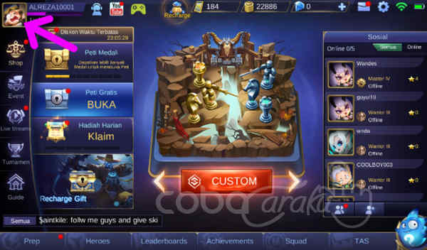 2. Jika tutorialnya sudah final dimainkan, Selanjutnya klik pada foto profil yang ada disudut kiri atas untuk masuk ke menu.