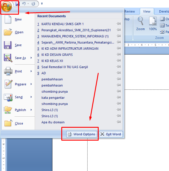 1. Menampilkan ruler/ pengaris pada Microsoft Word 2007