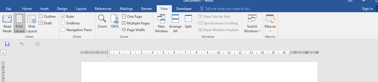 2. Cara Menampilkan Ruler/Penggaris Pada Word 2016 ( 2010, 2013)