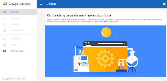 - Selanjutnya, sobat tinggal menunggu hasil dari keputusan pihak AdSense apakah blog sobat akan diterima atau ditolak. Biasanya akan memakan waktu 1 sampai 2 hari dan bisa lebih cepat atau bisa juga lebih lama.