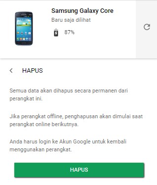2. Pastikan kamu yakin kalau hp kamu yang hilang uda ga bakalan balik lagi lalu tekan pilihan hapus