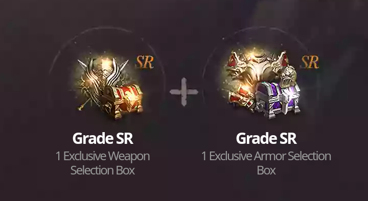 Saat Pra-Registrasi ras Orc, 100% kamu akan mendapatkan 1 Grade SR Exclusive Weapon Selection Box dan