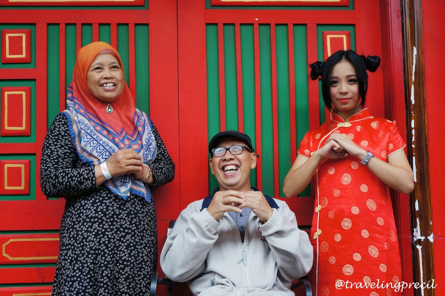 Kami keluarga precils berempat berkunjung ke museum angkut ini dengan Ibu, Bapak, adik saya Dila, suami siaganya serta Baby K. Bapak saya paling cocok berpose di depan rumah-rumah Tionghoa. Sementara keluarga Dila keren banget posenya di samping bis Lambaiyan Bunga. Wajahnya Melayu banget, hehe.