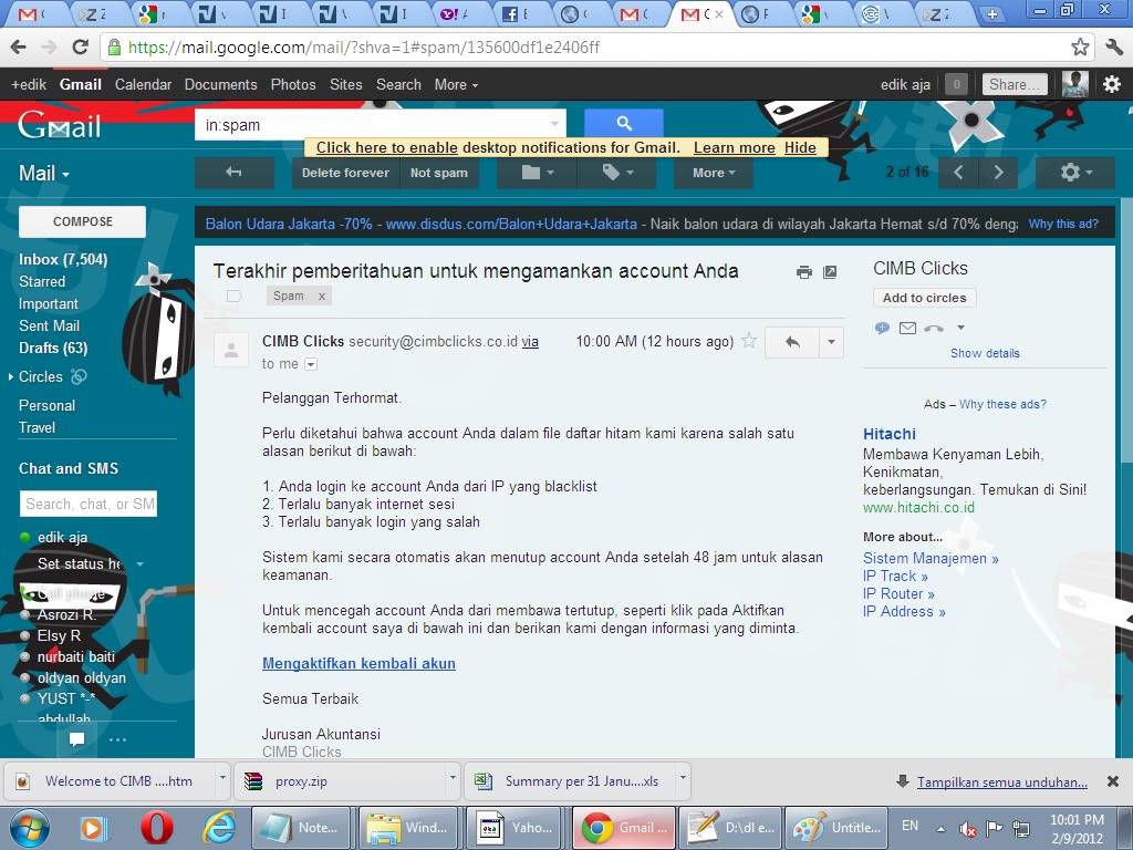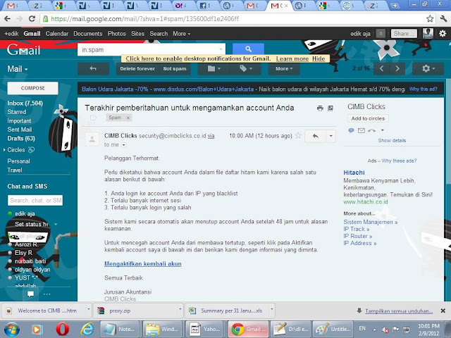 1. Phisher/pelaku akan mengirim email mengatas nama kan cs dari bank tersebut untuk mengaktifkan kembali akun yang bermasalah.