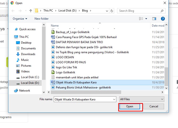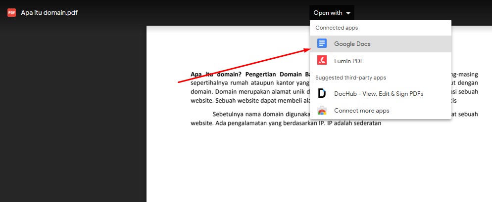 – setelah terupload dauble clik pada file yg suda di upload setelah terbuka pilih google dokumen.