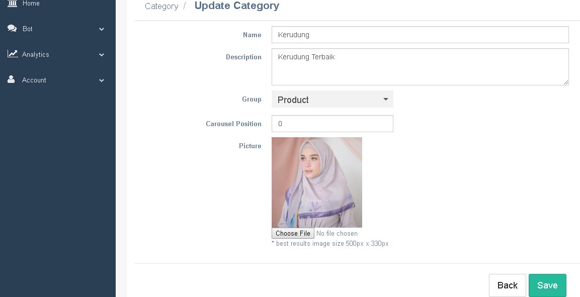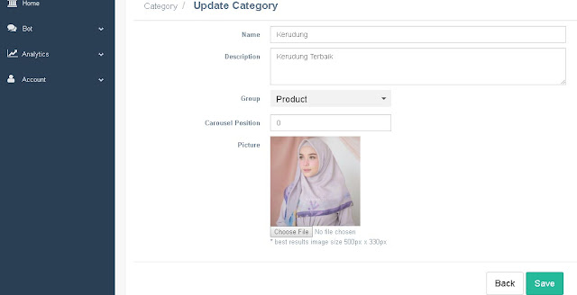 Lalu pilih produk yang dapat mewakili kategori tersebut, dengan menekan tombol browse dan pilih foto yang dimaksud, Lalu “Save”.