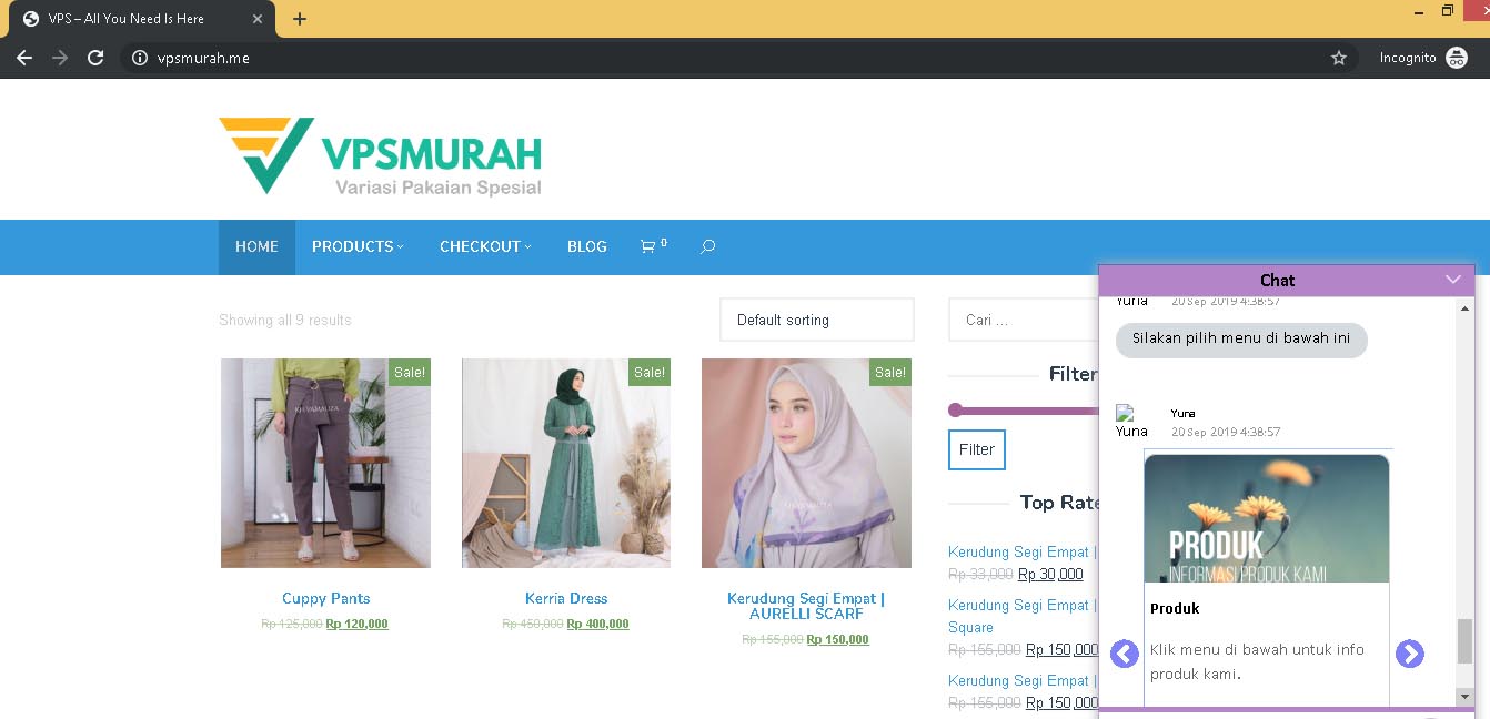 dan jangan lupa di simpan, maka akan seperti ini tampilan Live Chat nya :