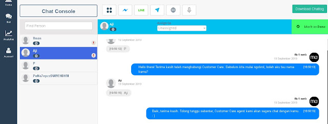 Selesai, selain itu jika anda sudah mengintegrasikan chatbot anda dengan facebook messenger atau telegram, anda bisa langsung membalas pesan dari customer anda via Chat Console ini (harus di integrasi terlebih dahulu yah)